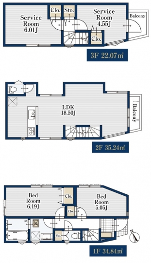 ゆったりとした3階建て4LDKの間取りは建坪30坪超もあります!