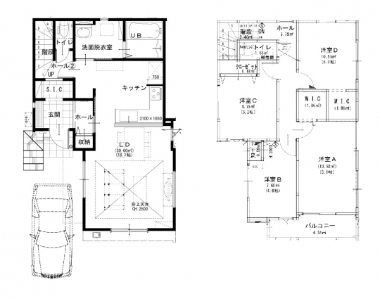 ゆったりとした大型2階建て4LDKの間取りには食洗機や浴室換気乾燥機なども標準装備です。