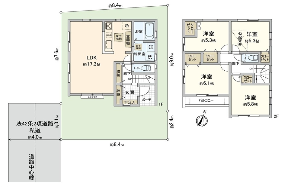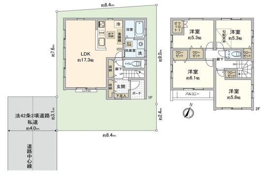 ゆったりとした2階建て4LDKの間取りで南面にスペースがありますので日当たりも良好です。