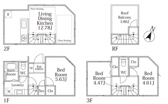 3階建て3LDKの間取りに床暖房や幹太くんなど充実の設備が標準装備です。