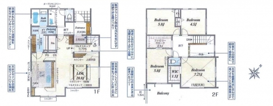 ゆったりとした2階建て4LDKの間取りで収納も多く魅力あふれる1棟です。