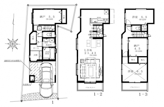 3階建て4LDKの間取りでLDKは21.43帖とゆったりとしています。