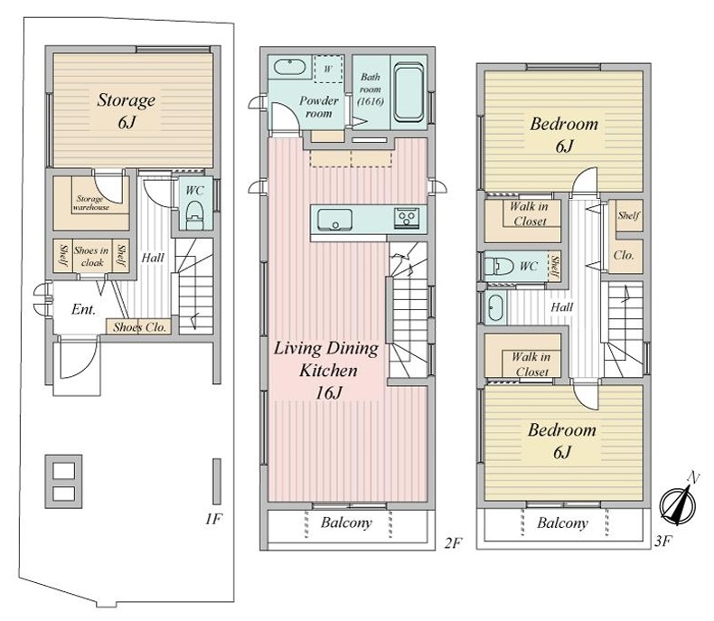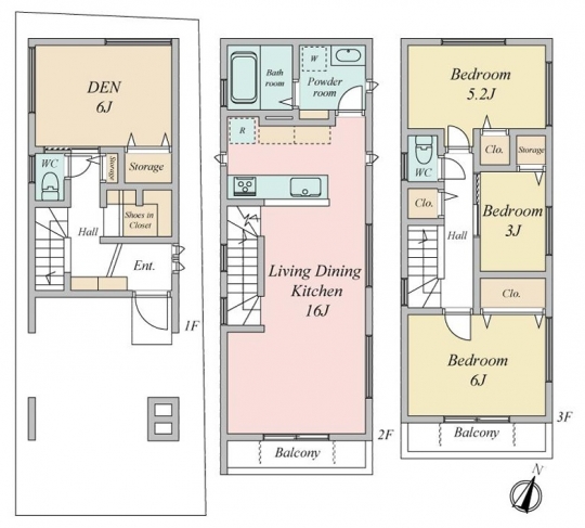 3階建て3LDKの間取りで水回りがリビング階に集中していますので家事動線がスムーズです。
