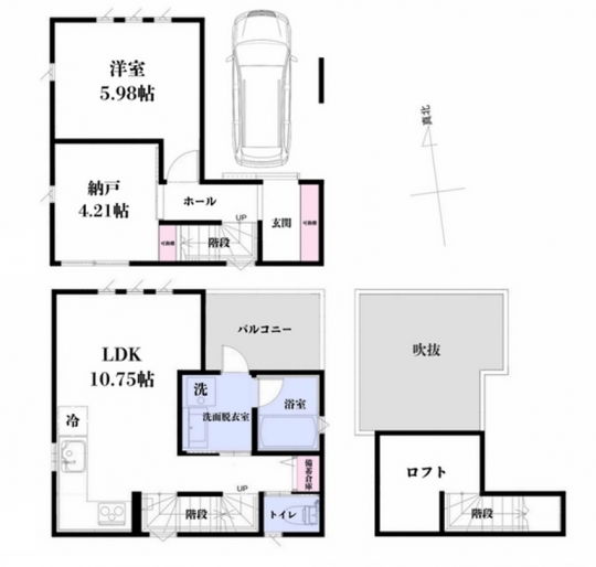 コンパクトながら考え抜かれた間取りは水回りがリビング階に集中していますので、家事動線がスムーズです。