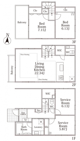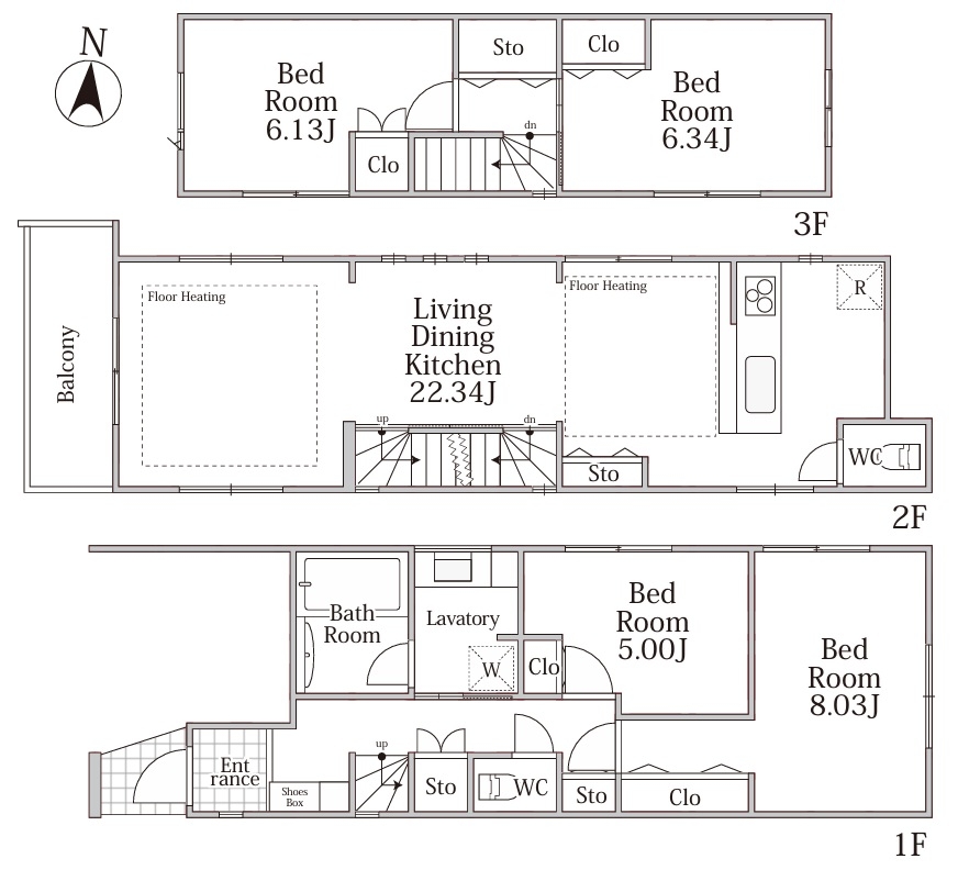 全棟ゆったりとした間取りが魅力な3階建て4LDKです。LDKは20帖以上あり床暖房も付いていますので暖かな空間で家族団らんできますね。