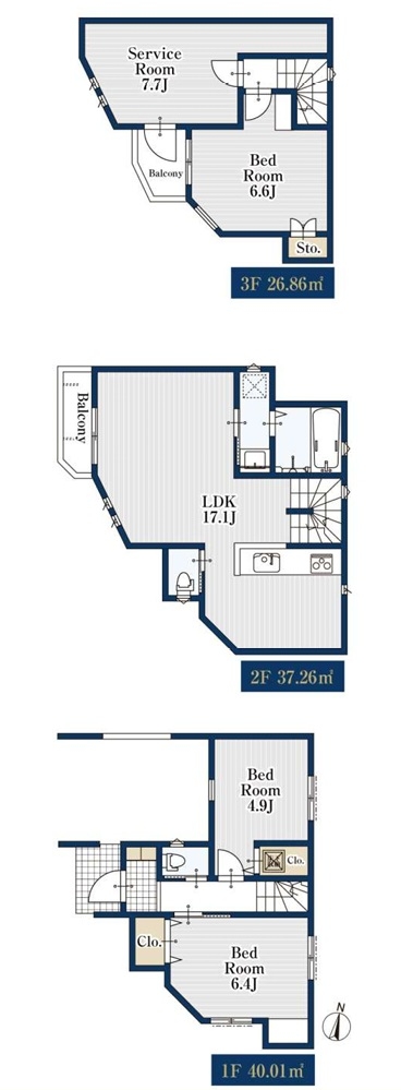 ゆったりとした3階建て4LDKの間取りで、リビング階に水回りが集中していますので家事動線がスムーズです。