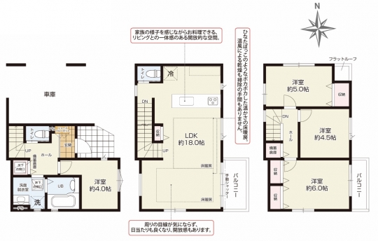 ゆったりとした間取りの3階建て4LDKで床暖房や食洗器など、充実の設備仕様が標準装備です。