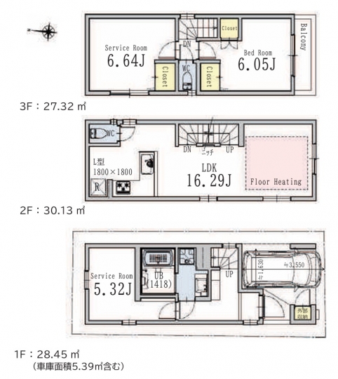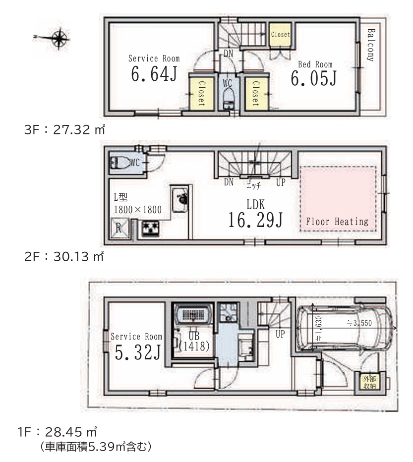 3階建て3LDKの間取りには床暖房や食洗器など充実の仕様設備が標準装備です。