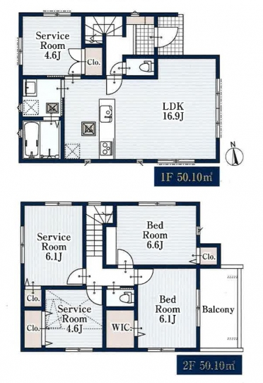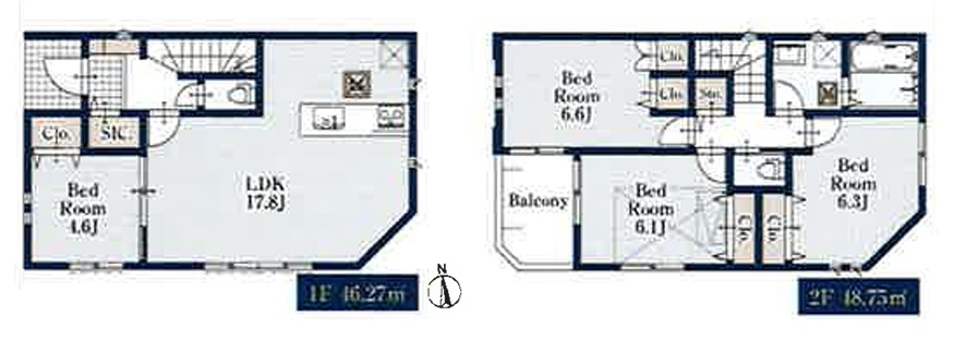 低層エリアにゆtったりとした2階建て4LDKの間取りです。