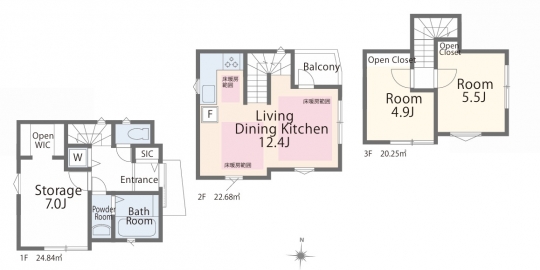 3階建て3LDKの間取りには食洗機や床暖房など充実の仕様が標準装備です。